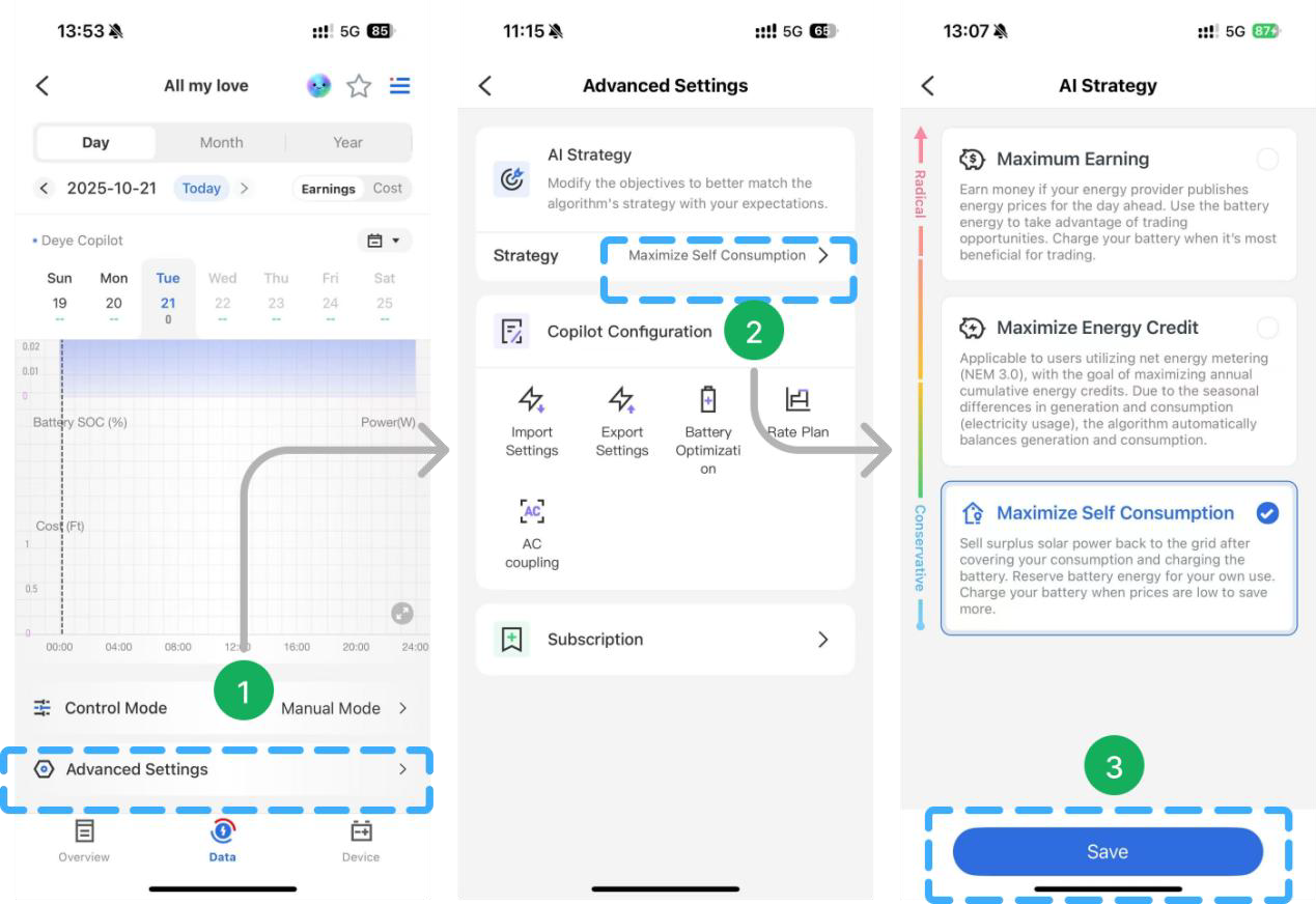 ⚙️ Deye Cloud App – Configuración Avanzada: Estrategia AI, Suscripción, Centro de Mensajes y Migración de Datos 📊