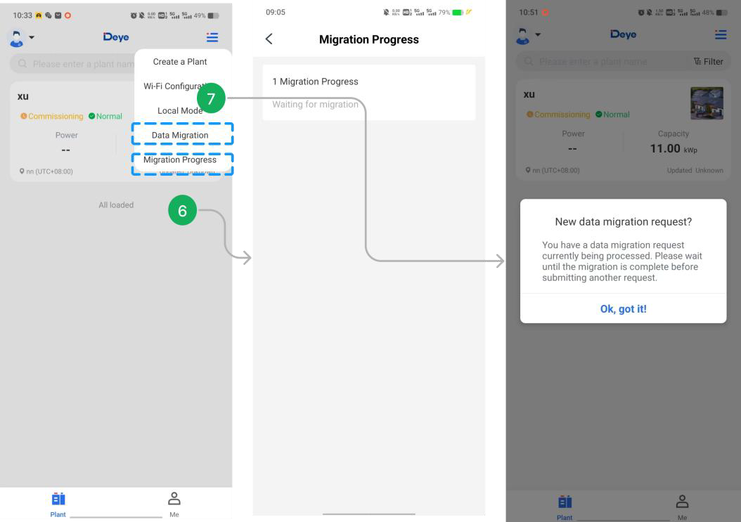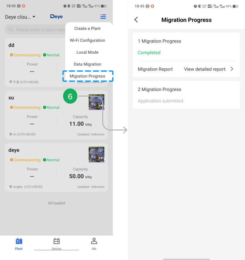 ⚠️ Nota: Los datos de la planta se pueden seleccionar para migrar a cuentas de negocio de Deye Cloud. De lo contrario, los datos se migrarán a cuentas personales por defecto.