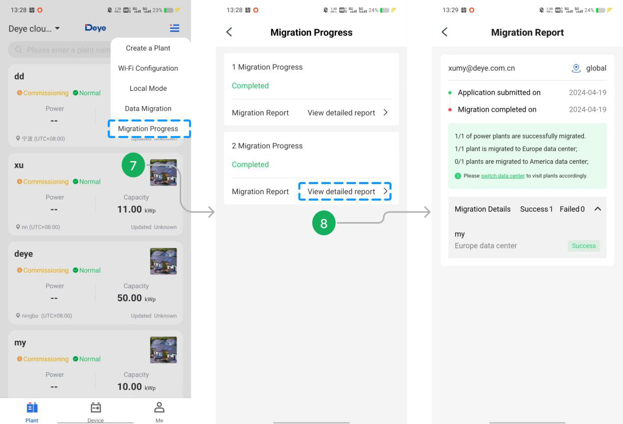 - ✅ Paso 8: Después de que se complete la migración, toque en 【Progreso de Migración】 para ver el informe de migración.