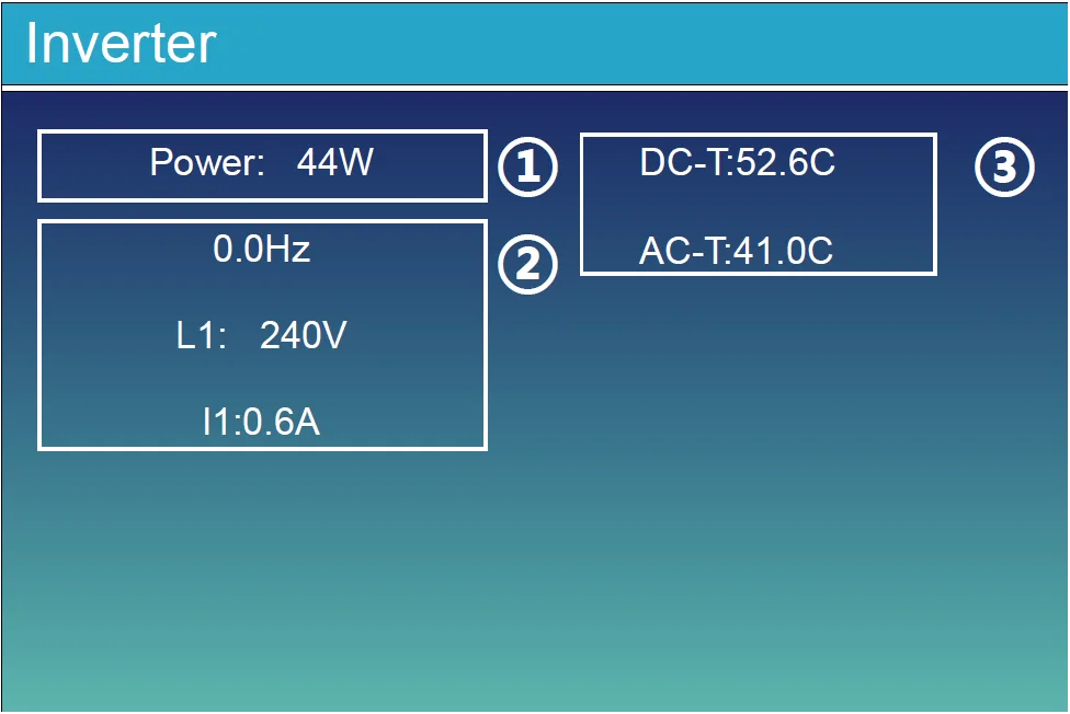 - 0.0Hz: frecuencia después de la conversión DC/AC.