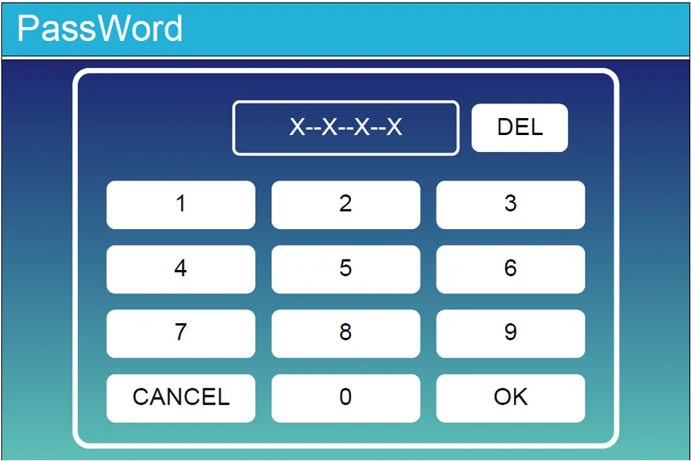Autocomprobación del Sistema (System selfcheck): Al marcar esta opción, se requiere ingresar una contraseña. La contraseña por defecto es 1234.