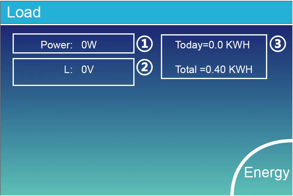 Cuando se selecciona «Selling First» o «Zero export to Load» en la página del modo de funcionamiento del sistema, la información de esta página corresponde a la carga de respaldo (backup load) que está conectada al puerto «Load» del inversor híbrido.