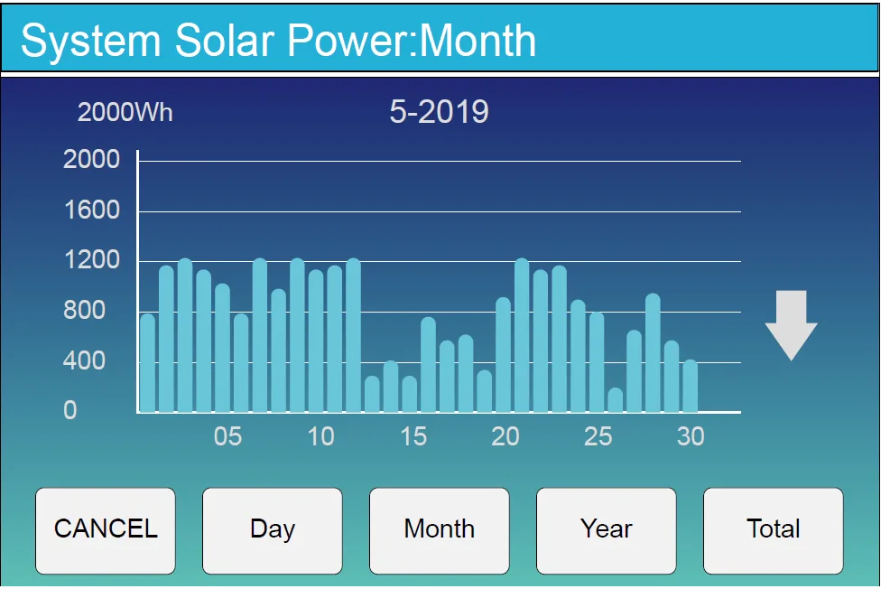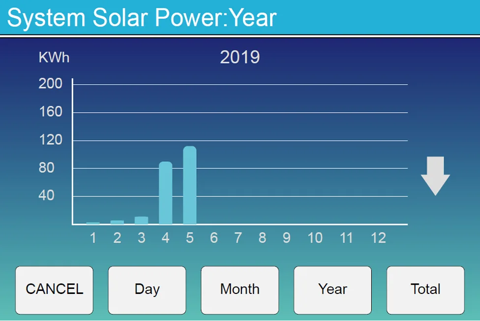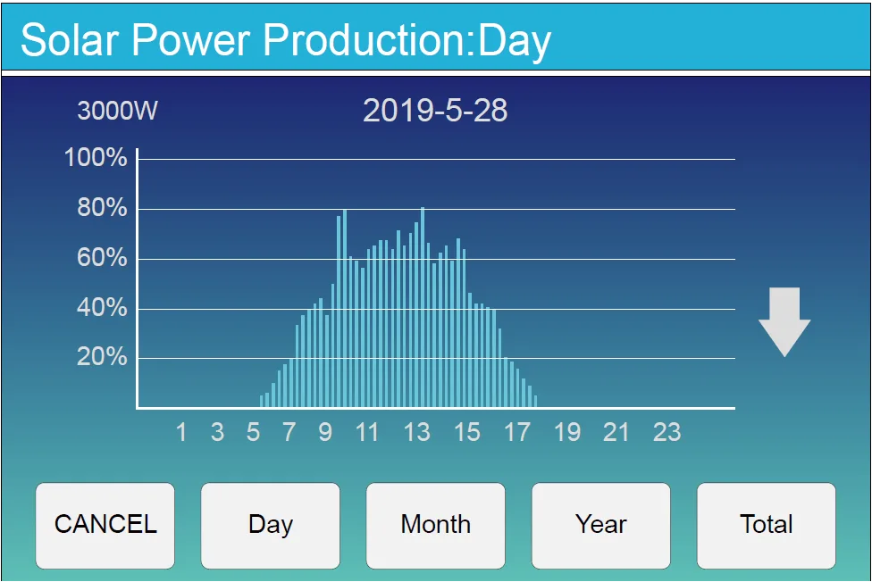 Solar power curve for daily, monthly, yearly and total can be roughly checked on the LCD, for more
